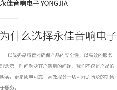 拉薩永佳音響電子有限公司 拉薩永佳音響電子有限公司坐落于美麗富饒的圣城拉薩,公司前身為拉薩昊成音響電子銷售有限公司,注冊資金為300萬元,成立于2010年3月公司地址位于西藏拉薩市貢布塘南側1號薩博廣場4-5、4-8號。拉薩永佳音響電子有限公司主營專業舞臺音響設備、會議音響系統設備、公共廣播音響系統設備、網絡及監(jiān)控設備、多媒體教學設備、多媒體投影機、幕布、弱電線材、辦公設備、LED液晶顯示屏品種齊全、服務效率、拉薩